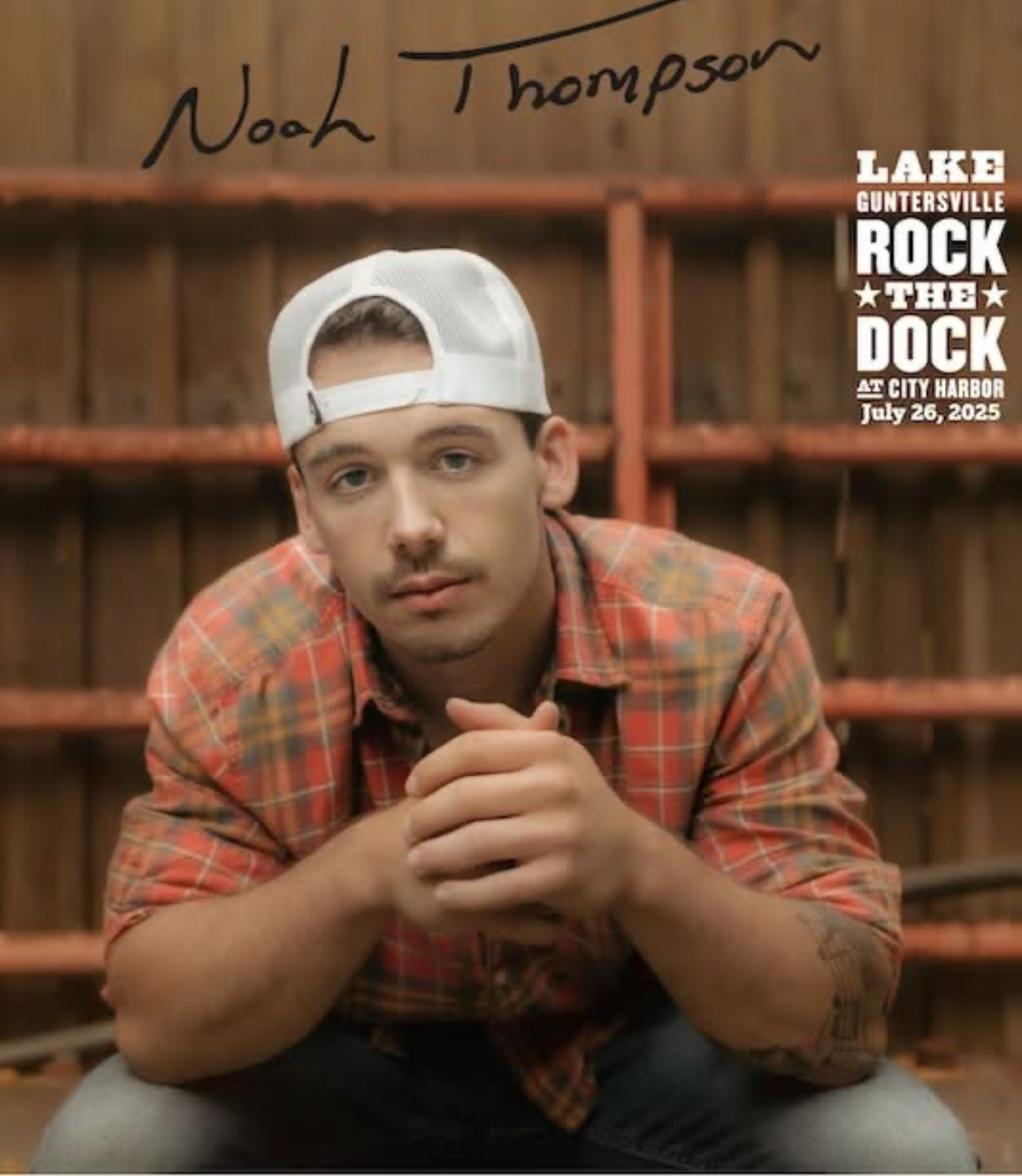 We’re thrilled to announce that American Idol Season 20 winner Noah Thompson will be an opening act for: Lake Guntersville Rock the Dock 2025! With over 100 million streams, a hit single “One Day Tonight”, and songwriting credits like “Front Door Famous” on Luke Combs’ 2024 album, Noah is a serious artist on the rise!
